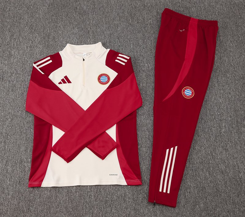 2024/2025 Bayern Half-Pull Training Suit White Red Jersey Set 1:1 Thai Quality